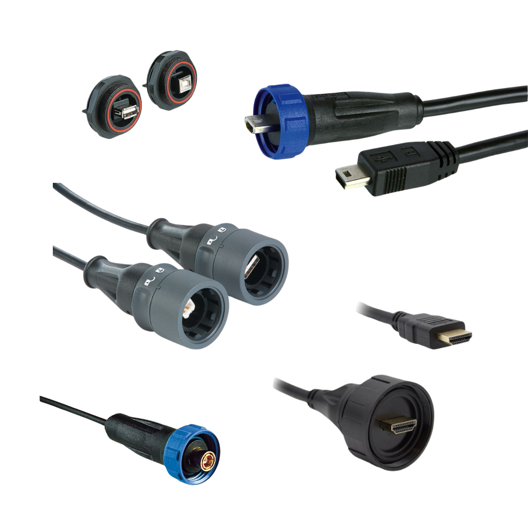 - USB & IEEE 1394 connector – Compacte aansluitingen voor snelle data-overdracht binnen apparatuur, meetinstrumenten, communicatie- en besturingssystemen.