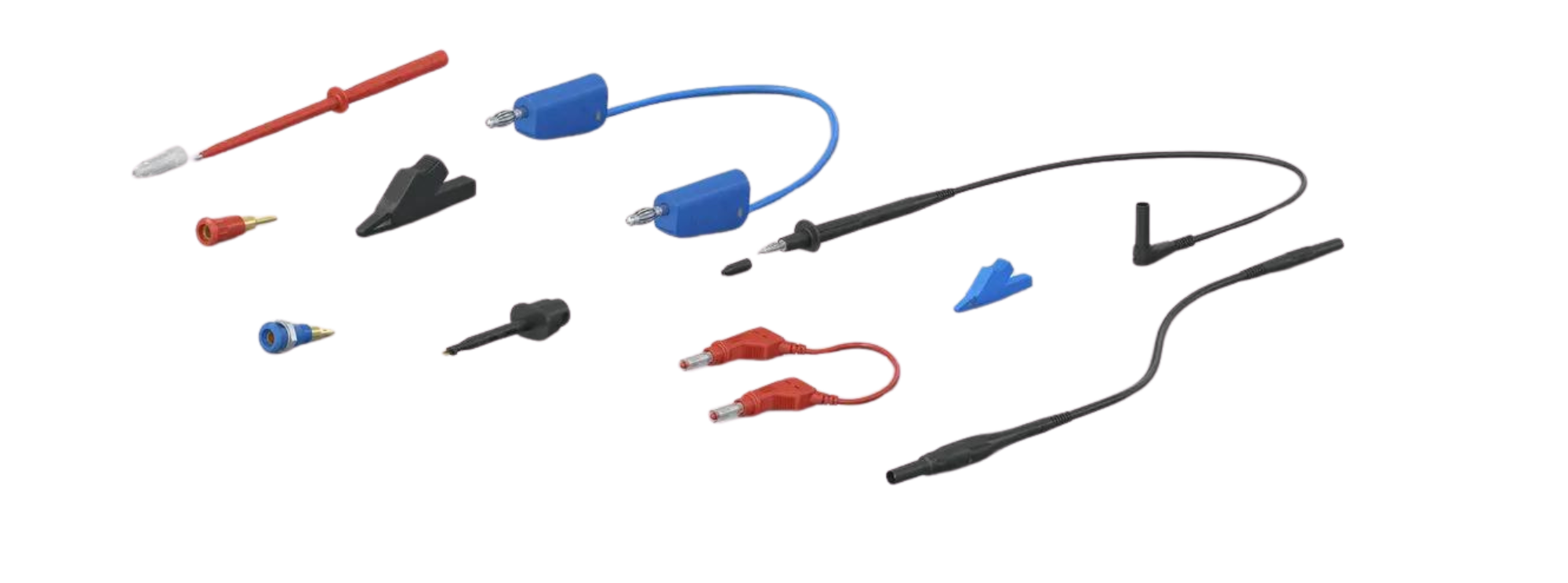 - Meetsnoeren en meetpennen – snoeren, pennen, krokodillenklemmen en toebehoren voor contactvaste metingen.